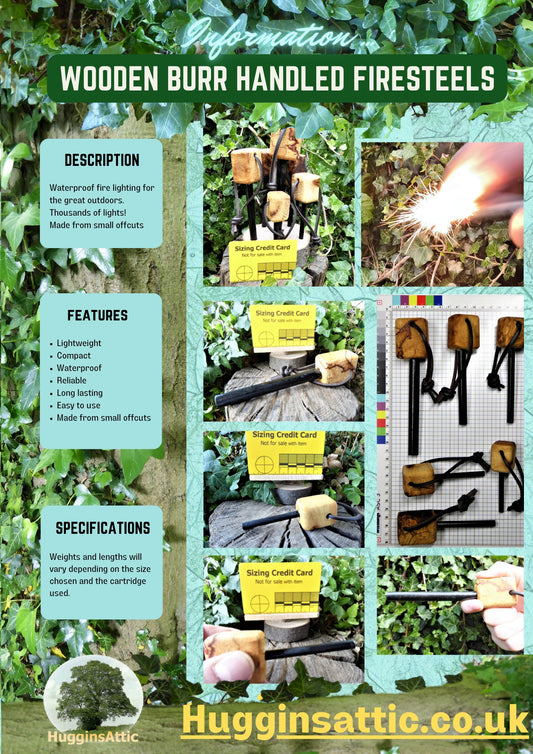 Burr Wood Handled Firesteels in various sizes